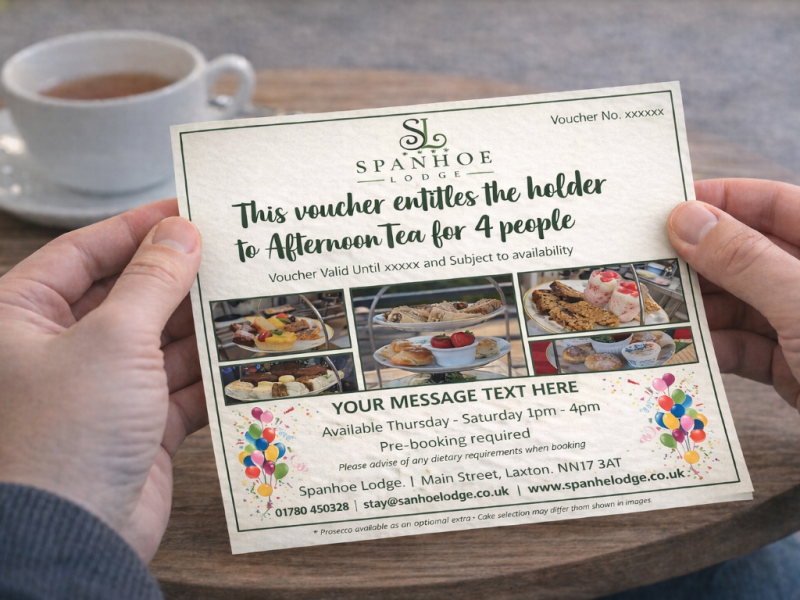 Voucher for Afternoon Tea for Two at Spanhoe Lodge